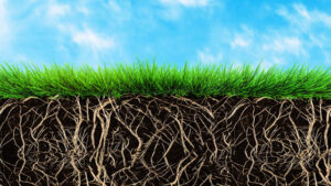 Below ground grass roots are even more impressive. For example, a single grass plant can generate millions of individual roots that weave miles of individual fibers. Multiplied by 8 million plants, this forms a massive underground filter that traps and digests atmospheric pollutants. This root mass is home to billions of microorganisms that work together to build up the humus and soil fertility and reduce carbon dioxide. This complex system of microbial activity is essential for healthy plant growth and the decomposition of organic matter.