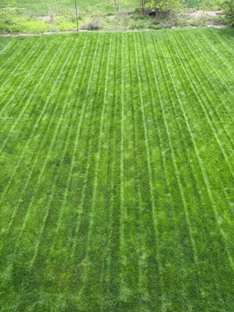 Spring has sprung and the grass is coming alive! I added some heatwave to the bluegrass this year and it’s really going! Threw down some circle stripes and I think it looks great! Get out there and experiment!