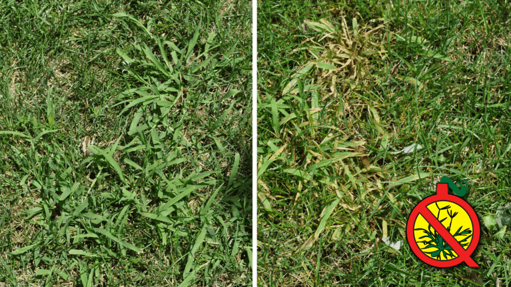- Uncle’s Q-Bomb products are most effective on crabgrass when applied to newly germinated crabgrass with one to six leaf while having no more than two tillers and after crabgrass has matured to five tillers or greater.