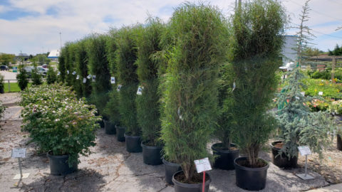 Green Giant Arborvitae is Uncle’s favorite backyard screen. It’s considered one of the best evergreen trees for privacy. This western red cedar is fast-growing and can provide privacy quickly. Cold hardy to our region, the Green Giant can survive harsh conditions and tolerant of pests and disease. The uniform, natural cone shape requires very little pruning. Height: 30’-40’ Width: 5’-8’ Spacing: 10’-12’