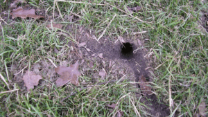 Trapping is the most successful and economical approach. An old-fashion snap mousetrap used with peanut butter for bait is the easiest method. If you’re lucky enough to find an entrance to their burrow an idiot-proof trap can be constructed with a piece of cardboard, a couple of snap traps and a few nails. Watch our video on how to build a better vole trap video.