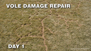 Unsightly as they look, vole trails in the lawn can easily be fixed. After raking and removing any dead vegetation, backfill the surface trails with Primera Sports Field Conditioner. PrimeraOne is weed free and an ideal medium for growing grass. Calcined clay chips of sports field conditioner absorb and hold heat from the sun to work as a blanket for grass seed to germinate. Overseed trails at a heavy rate using grass seed that will sprout in cooler soils. Macho Mix, Estate Mix or Stadium Special are ideal blends for early spring spot repairs. Top dress the seed with another thin layer of PrimeraOne then apply Golf Course Starter fertilizer. Keep the area consistently moist and it will be difficult to find those same trails by Mother’s Day.