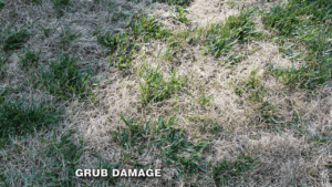 Grub damage can occur from mid-summer through early fall. Grub damage is the most severe when the turf is dry or under stress from lack of proper fertilization. Visible grub damage may not appear until September or October.