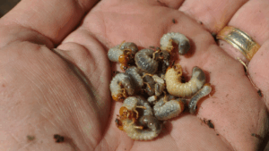 White grub is a general term used to describe the larval stage of several common large beetles – June Bugs, May Beetles, Masked Chafer Beetles, and Japanese Beetles. The grubs feed on the roots of your lawn and can kill large sections in a very short amount of time.